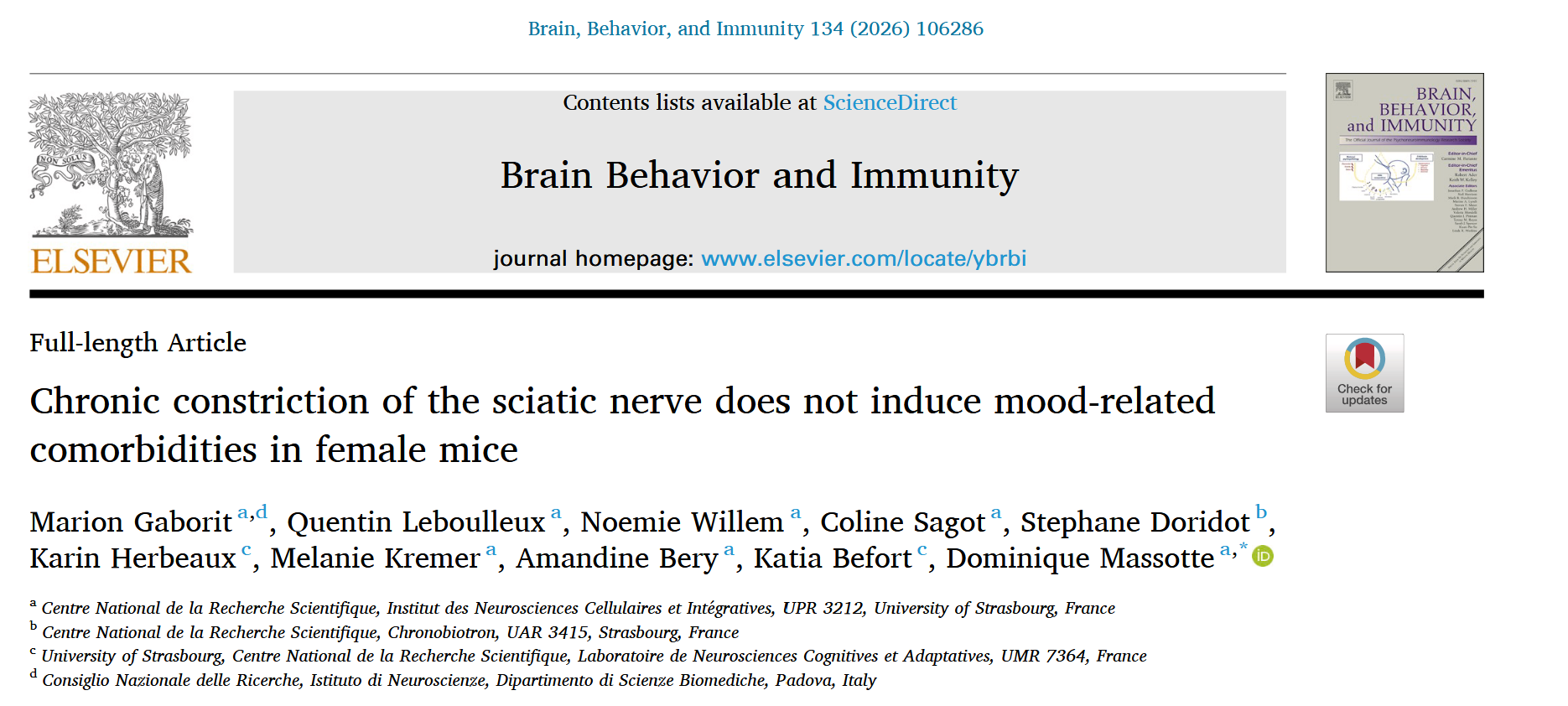 Article 31 mars 2026 Thermal modulation of tactile perception in young and older adults: Local and remote effects Article 13 janvier 2026 Chronic Pain and Neuroinflammation Article 31 janvier 2025 The endocannabinoid system in binge eating and obesity Article 22 mars 2024 The RMTg and Fat intake lien vers l'article Prix 16 avril 2026 Prix de la meilleure présentation orale - Culture Conference Bravo à Théo Lemeux!